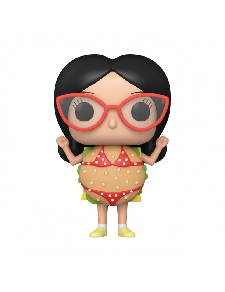 Figurka Funko Pop z serii Bob's Burgers przedstawiająca Lindę Belcher w stroju kąpielowym i z "burgerem bikini", co jest nawiązaniem do jednego z humorystycznych momentów z serialu. Taki wygląd oddaje charakterystyczny styl humoru "Bob's Burgers", który łączy codzienne sytuacje z absurdalnymi i komicznymi elementami.