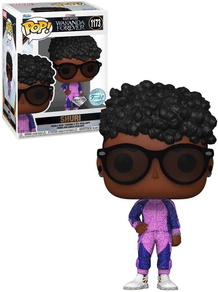 Figurka Funko Shuri pochodzi z serii "Black Panther: Wakanda Forever" i przedstawia postać Shuri w jej stroju motocyklowym, gotowym do akcji. Figurka ma na sobie czarny kostium bojowy detalami technologicznymi, charakterystycznymi dla zaawansowanej technologii Wakandy. Jest częścią kolekcji Diamond, co oznacza, że pokryta jest błyszczącym, brokatowym wykończeniem, dodającym jej wyjątkowego stylu.