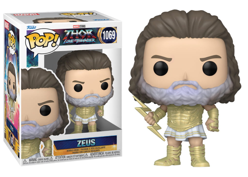 FUNKO POP! MARVEL THOR Zeus o figurka przedstawiająca postać Zeusa, którą w filmie Thor: Love and Thunder zagrał Russell Crowe. Zeus jest jednym z najpotężniejszych bogów w mitologii greckiej, a w filmie jest przedstawiony jako pewny siebie, wszechwładny władca Olimpu.