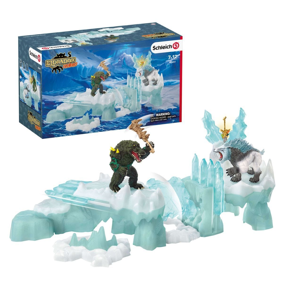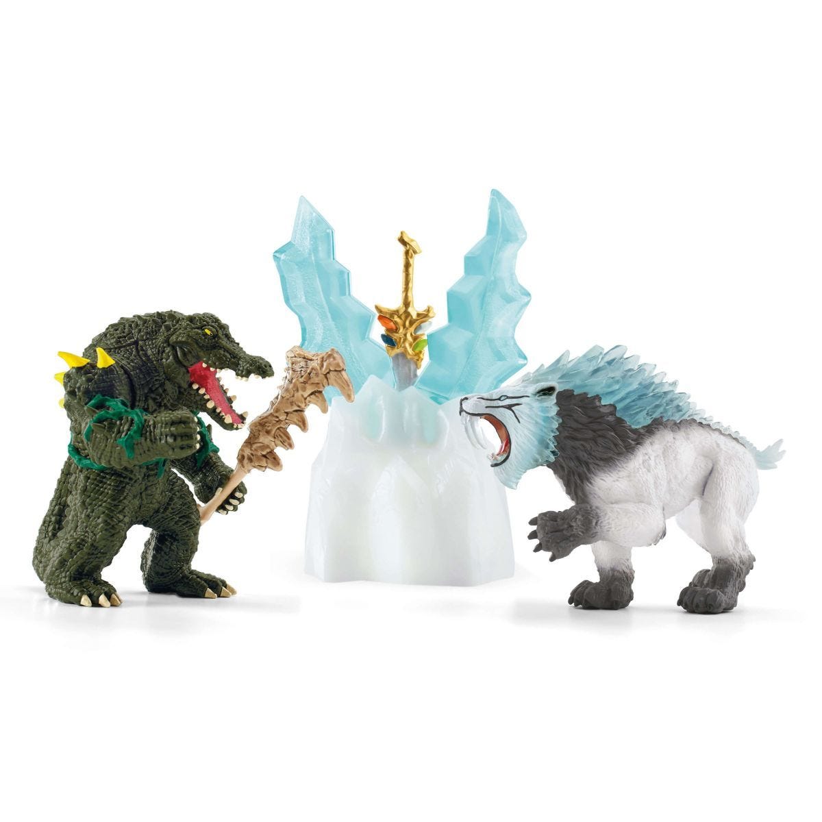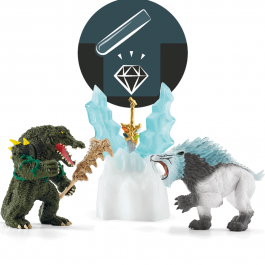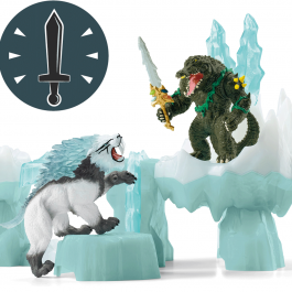 Podczas ataku na lodową twierdzę z serii Schleich® Eldrador® Creatures, na wojowniczego krokodyla ze świata dżungli czekają w krainie lodu straszliwe przeszkody, potężny most zwodzony oraz tajemny schowek. Celem ataku jest zdobycie superbroni! Miecz schowany jest jednak pod grubym pancerzem z lodu, którego z całych sił broni straszliwy tygrys szablozębny...