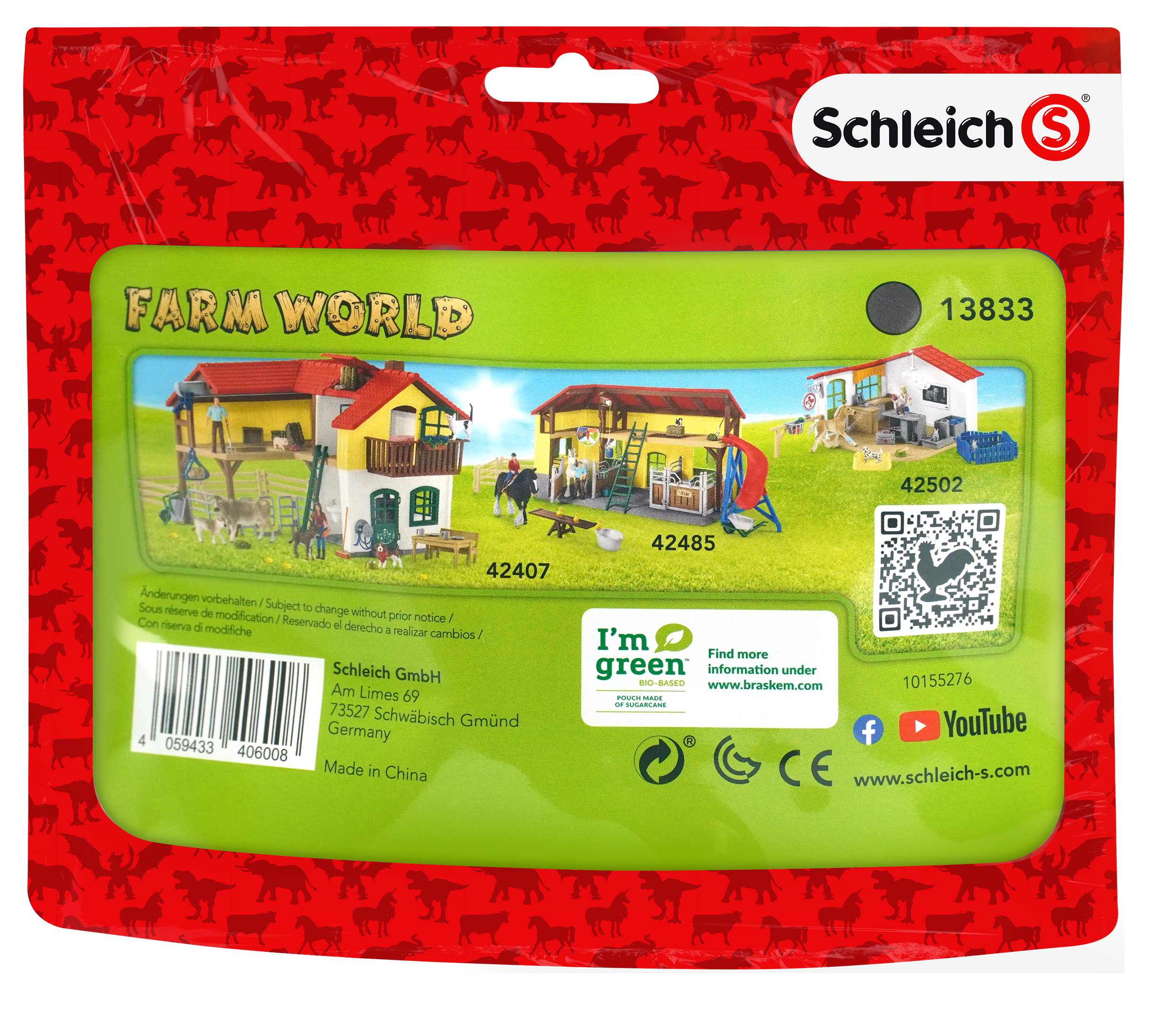 To nowa seria produktów Schleich - Red. Figurka, której numer oznaczony jest dodatkowo literą S, znajduje się w półprzezroczystej saszetce, z pięknym zadrukowanym tłem nawiązującym do serii, z której pochodzi produkt. W tym wypadku to seria Farm World. Produkt wraz z saszetką stanowią spójny zestaw, który stanowić może doskonałą formę prezentu.