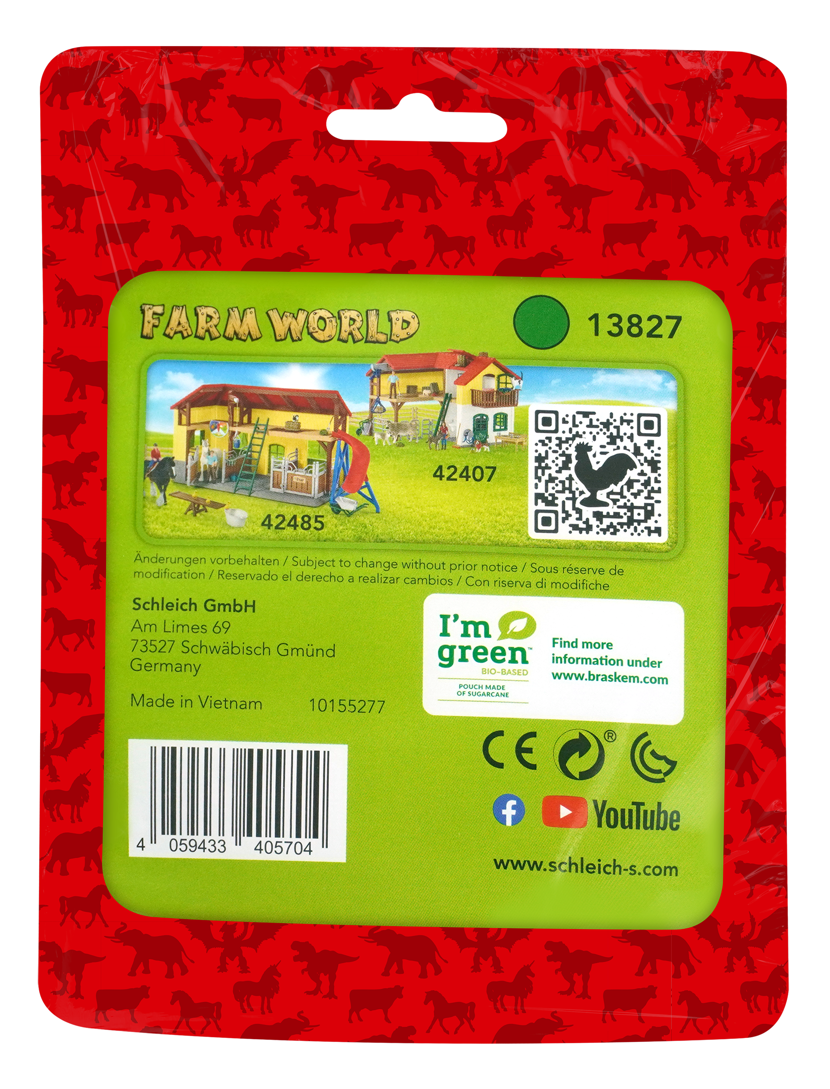 To nowa seria produktów Schleich - Red. Figurka, której numer oznaczony jest dodatkowo literą S, znajduje się w półprzezroczystej saszetce, z pięknym zadrukowanym tłem nawiązującym do serii, z której pochodzi produkt. W tym wypadku to seria Farm World. Produkt wraz z saszetką stanowią spójny zestaw, który stanowić może doskonałą formę prezentu.