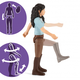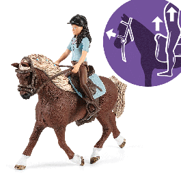 Myjnia Emily i Luny z klubu jeździeckiego z serii Schleich® Horse Club jest bardzo nowoczesna. Całkowicie ruchoma figurka Emily odwiesza siodło i uzdę na stojaku, przywiązuje kantarem swą piękną klacz holsztyńską Lunę do myjni i czyści jej sierść zgrzebłem i kardaczem ze skrzynki z narzędziami do mycia. Wąż do wody wisi na ruchomym odchylanym drążku. Dzięki temu łatwo jest umyć konia ze wszystkich stron. Antypoślizgowa gumowa mata pierścieniowa zadba o stabilną pozycję konia podczas zimnego prysznica.