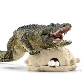 Ostrożnie! Na bagnach w świecie schleich® WILD LIFE musisz uważnie stawiać każdy krok. W przeciwnym razie nie tylko ubrudzisz skarpetki — wąż lub krokodyl mogą ukąsić Cię w stopę. Zazwyczaj są dość spokojne, ale kiedy za dużo śpią, mają mnóstwo energii, co oznacza, że muszą się wyładować. To właśnie wtedy wąż próbuje wykraść jaja z gniazda i zjeść je na surowo. Krokodyl za to woli je usmażyć! Jak myślisz, kto je zdobędzie? A może zdołasz przechwycić jajka i pędem zanieść je do kuchni?